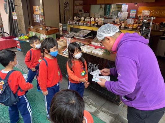 地域にある杭瀬幼稚園年長組の園児さんが、お店の中でお仕事体験をして、オリジナルの金券をお給料として受け取り、