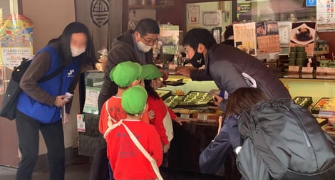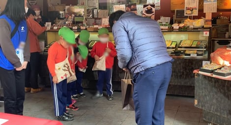 くいせ幼稚園の年長さんが1日お店屋さんの体験をするという