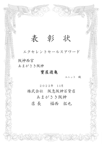 多くのお客さまからご支持を得た事を讃え表彰していただきました。